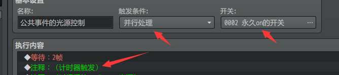 公共事件中,也要注意并行事件的设置。
