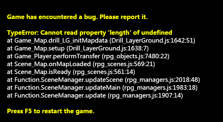 | 原理解析 | 该问题属于正常报错,插件找不到指定的数据,所以会反馈出这类报错问题,这类问题如果在 插件示例 中不会出现,那么很有可能是新插件找不到旧存档中的数据而产生的问题。因为,加入新的插件后,部分新插件 会去存档内容中找是否有自己对应的数据,由于旧存档没有给插件开辟存储变量空间,所以会返回未定义的错误。(mog插件都有这个问题;drill插件中做了兼容,大部分情况不会不存在此问题)该问题与 找不到’length’ 属于相同问题。 |