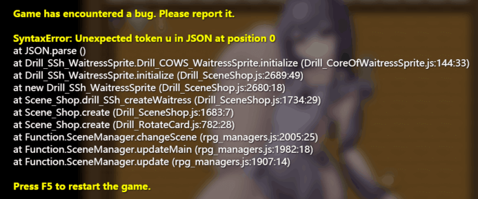 Rmmv软件1.5版本可能是下面的报错: