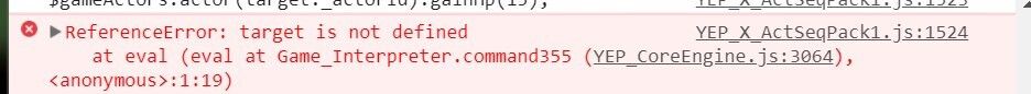 由上图可知, YEP_X_ActSeqPack1.js 插件有报错。