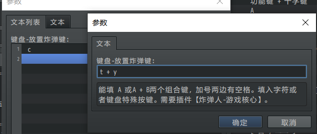 详细配置方法可以看看后面章节:设计一个同时按T和Y才能放炸弹的按键