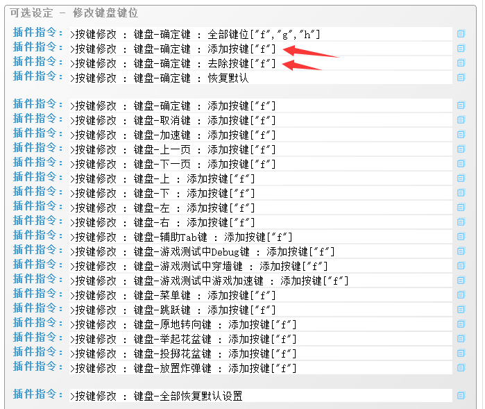 手柄按键为一对一,是单独对象,插件指令只能修改按键。键盘按键为一对多,是数组对象,插件指令可设置全部按键,也可以添加/去除按键。