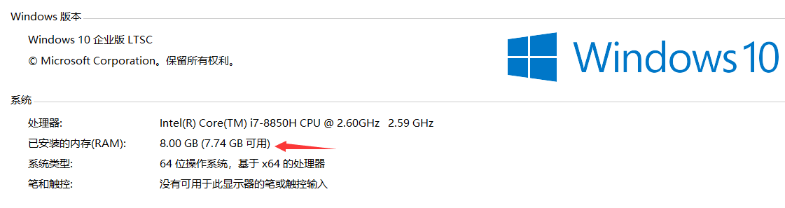 打开电脑的属性,你可以看到内存信息。