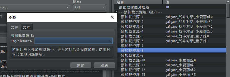 如果只需配置一张资源图片,则预加载参数只会问你是否预加载。如下图。