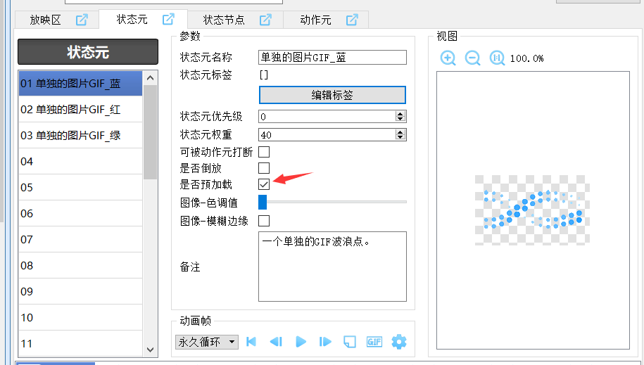 > 配置的GIF贴图在游戏时会不停地闪烁,那么该贴图可以开启预加载功能。