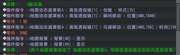 配置样式后,需要用插件指令创建一个 高级透视镜 ,控制这个透视镜在下方位置,播放动画时,匀速移动升起。原理见:斜向透视镜移动原理 。