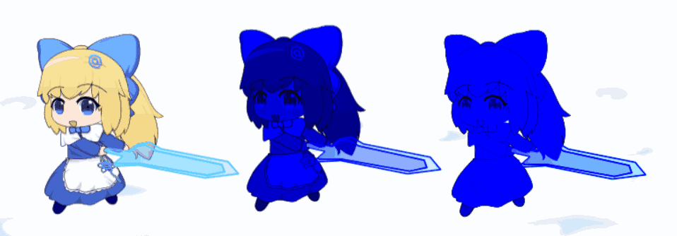 (从左至右依次为 原图、纯蓝、纯蓝+漂白)