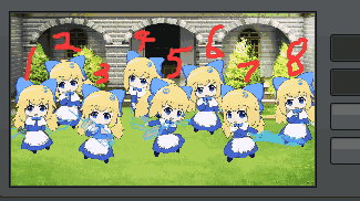 由于游戏进行时不知道你要给具体的哪个显示指定动画,于是就给敌群中的敌人添加1至8的编号。固定从左到右进行编号设置。