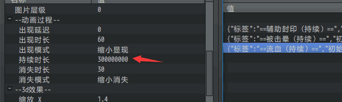 如果你想设置无限时间的魔法效果,只需要将持续时长设置为8位数以上就可以了。(8位数的帧,约等于一整天的时间)