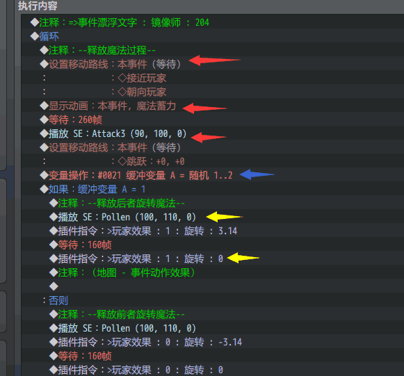 如果要设计固定剧情的”剧情向”魔法效果,最好玩家和敌人只有一个,多对多的问题就不需要考虑了,可以用后面一节介绍的插件指令。