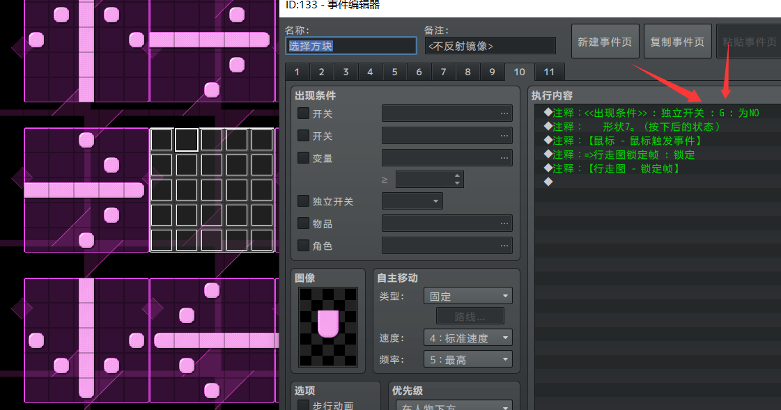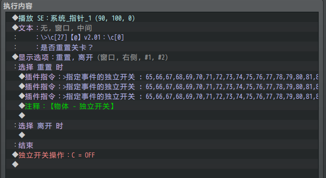 游戏流程中,重置关卡 的事件,会手动批量控制其他事件的独立开关。
