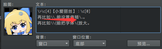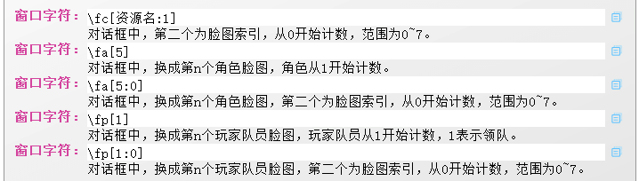 使用窗口字符“\fc[资源名:1]”可以切换任意的固定头像。