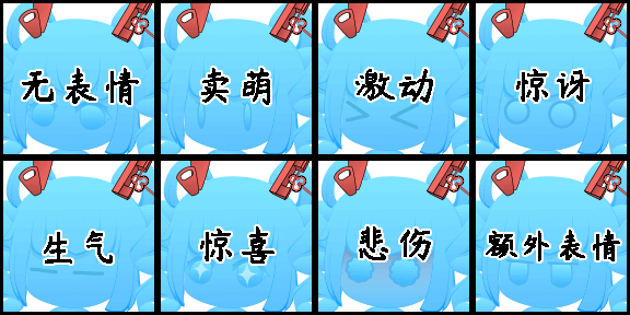 以量子妹为例,分成下图的固定的喜怒哀乐。