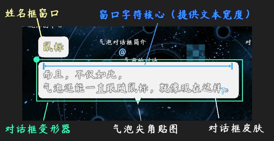 气泡框效果如下图。你也可以去看看示例中 对话框管理层 的介绍。