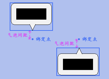 气泡间距是 气泡框+气泡尖角整体 与 绑定点 的间距,如下图。