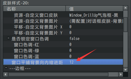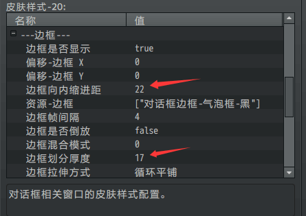 窗口皮肤背景向内缩进距、边框厚度、边框向内缩进距、尖角贴图位置、气泡间距