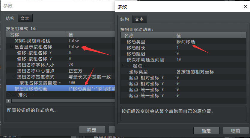 样式中先把按钮组默认的动画、名称都关掉,改成直接显示。