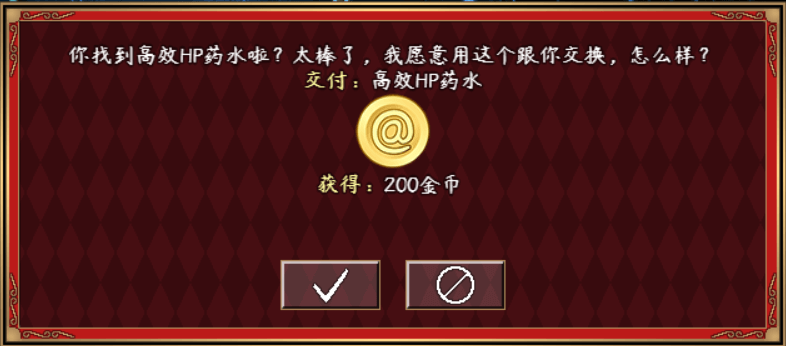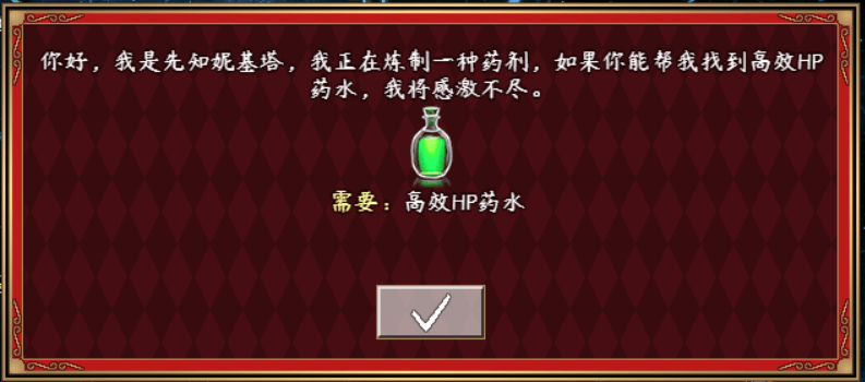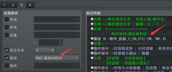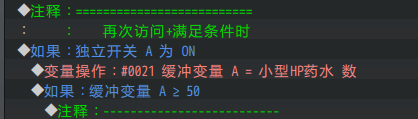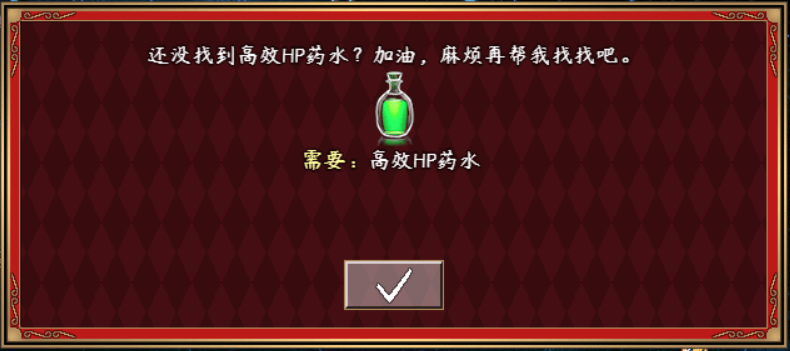 由于任务只要一瓶高效HP药水就能算完成,所以通过事件页是能写的。