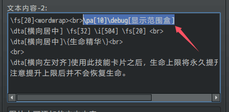 游戏中测试,可以看见绿线的效果,文本的范围盒被绿线挤进去了。