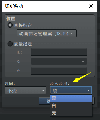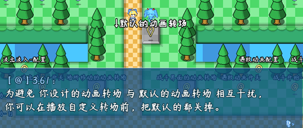 通常为淡出淡入动画,遇敌战斗时的闪烁动画也是默认的动画转场。