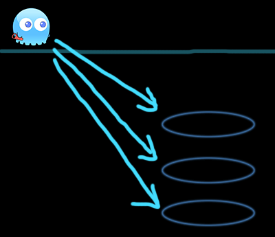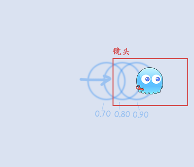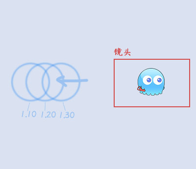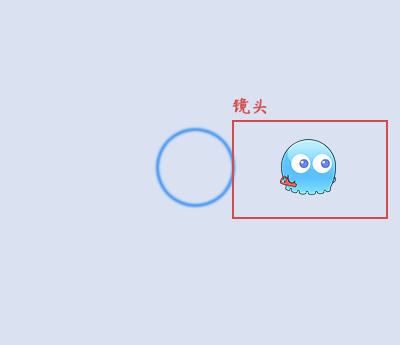 蓝色的圈为其中一个背景,镜头 向右 移动时,背景不会跟随镜头移动。