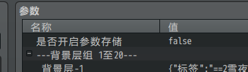 | 开启则当前所有背景层配置会一起存入存档中,但这会造成旧存档数据不同步的问题。关闭则只使用插件中配置的参数数据,但插件指令对 透明度、移动速度 的修改都只能临时有效,读取存档后失效。 |