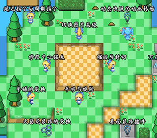 示例中介绍了 平移、旋转、缩放、斜切 等变换功能。