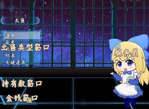 3).选择一个类型 > 部件:服务员 + 金钱窗口 + 持有数窗口 + 出售窗口 + 帮助窗口 +(选项按钮)【图3】