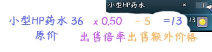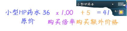 根据倍率计算,高效HP药水原价72。 72*0.05+0 = 3.6 -> 4。