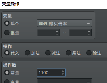 由于变量不能表示小数,这里的倍率变量取千分之一。假设变量[49]值为 1100 ,则倍率为 110.0%,也就是1.10。