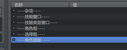 插件分成六个部分,技能类型、技能窗口、角色框、角色窗口、选择框、杂项数据。