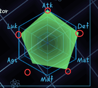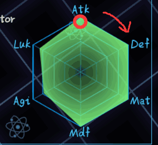 你可以选择设置具体的属性出现在雷达图中,但是顺序是固定的,并以顺时针排列,分别是8个:最大生命、最大魔法、攻击力、防御力、魔法攻击、魔法防御、敏捷、幸运。