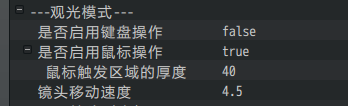 镜头模式: 即镜头移动的模式,分为自动模式和观光模式两种。