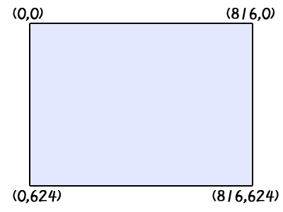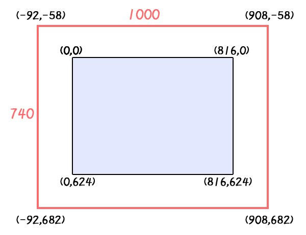 下图为 镜头架 1000x740 的大小下(默认分辨率816x624),四个角的坐标点分布。