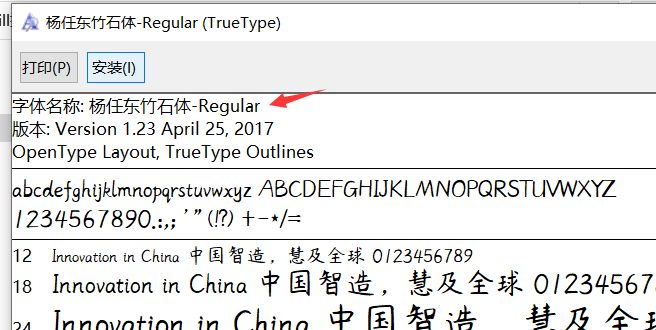注意,字体名称,是双击打开字体文件后,显示的字体名称。不是 字体的文件名 。有时候下载来的文件名和字体名可能不一样,需要改成一样,大小写也要一样。