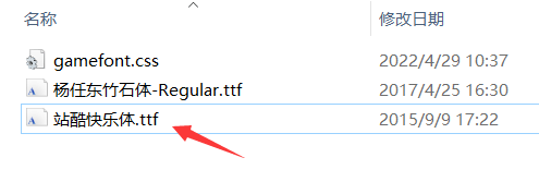 “@font-face”下有“GameFont”和“杨任东竹石体-Regular.ttf”。