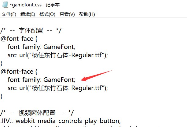复制“@font-face”一模一样的格式。(GameFont的设置不能删)