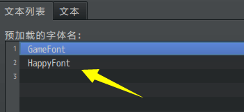 默认值为 ”GameFont”,你可以修改为其它 预加载的字体名。