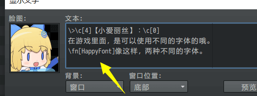在对话框中,使用窗口字符“\fn[HappyFont]”即可。