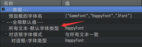 该配置默认为GameFont,可以改成其它字体名,所有文本会变。
