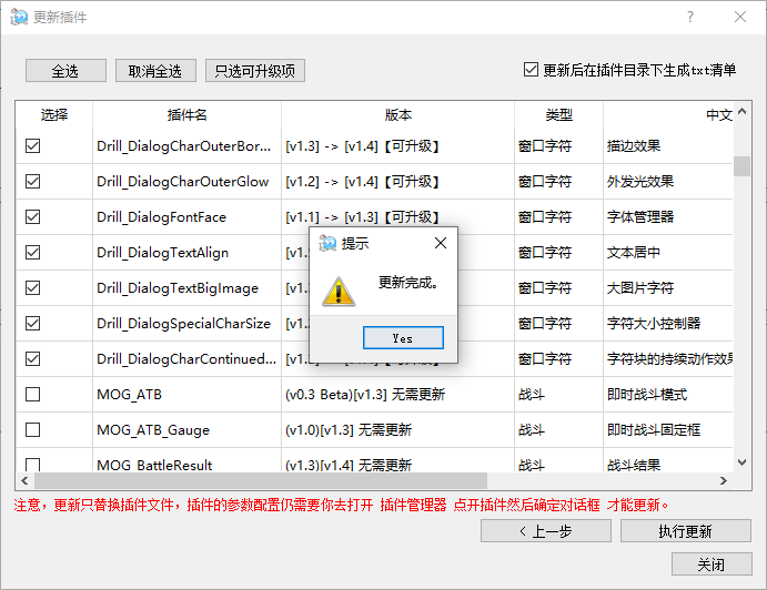 点击执行更新即可。(注意,文件覆盖后无法找回,记得先备份工程)