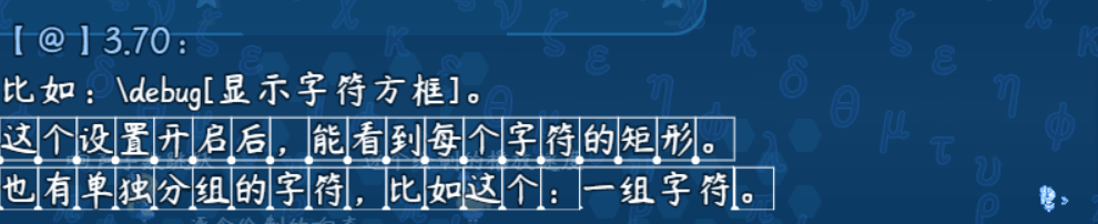 该核心提供的debug查看,可以让你看见每个字符的方框。