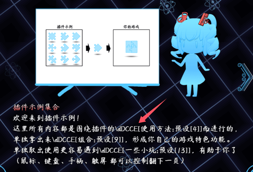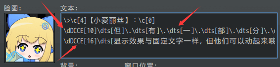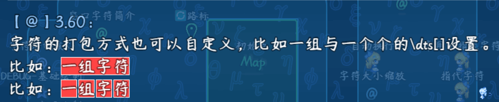 解决方案图中的 “\dDCEE[使用方法:预设[4]]” 更新后应写为:“\dDCCE[4]\dts[使用方法]\dDCCE[off]”(具体去看插件【窗口字符 - 字符块的持续动作效果】)原核心把字符块与插件配置紧密合并,但现在分离 窗口字符贴图核心 后,字符块通过”\dts[]”来单独管理,动态效果可以给多个 “\dts[]”字符块 同时添加样式,并且可以与其他插件的样式效果叠加。