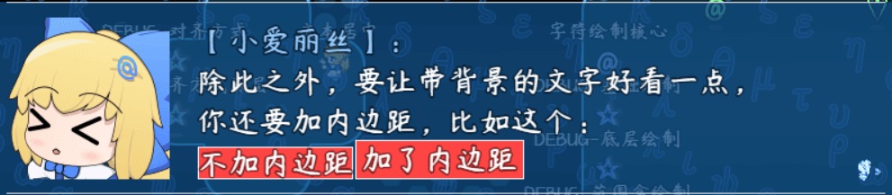 通常字符块背景,会与 字符块贴图核心 的内边距一起用: