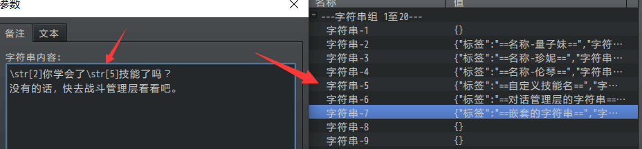 图中的字符串7,套用了前面2、5字符串中的内容,