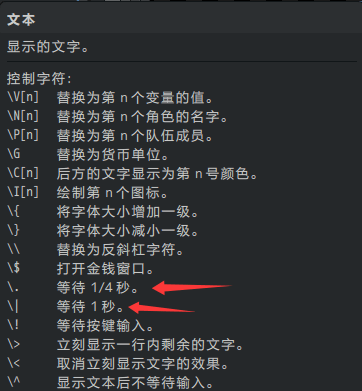 游戏中还提供了默认的 消息输入字符,比如等待的效果字符。