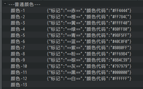 固定为 \c[0] - \c[31] 的颜色,对应窗口皮肤的右下角的32个颜色。