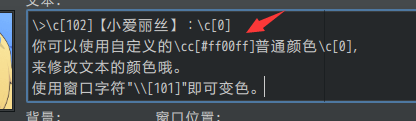 在窗口字符中添加 “\c[216]”因为是高级颜色,所以从200开始。