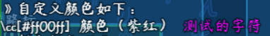 可以通过 \c[101] 或 \cc[#ff00ff] 定义。可见 普通颜色 。