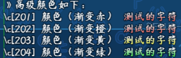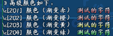 | \c[201] - \c[299] | 之后文字显示为高级渐变颜色。 |